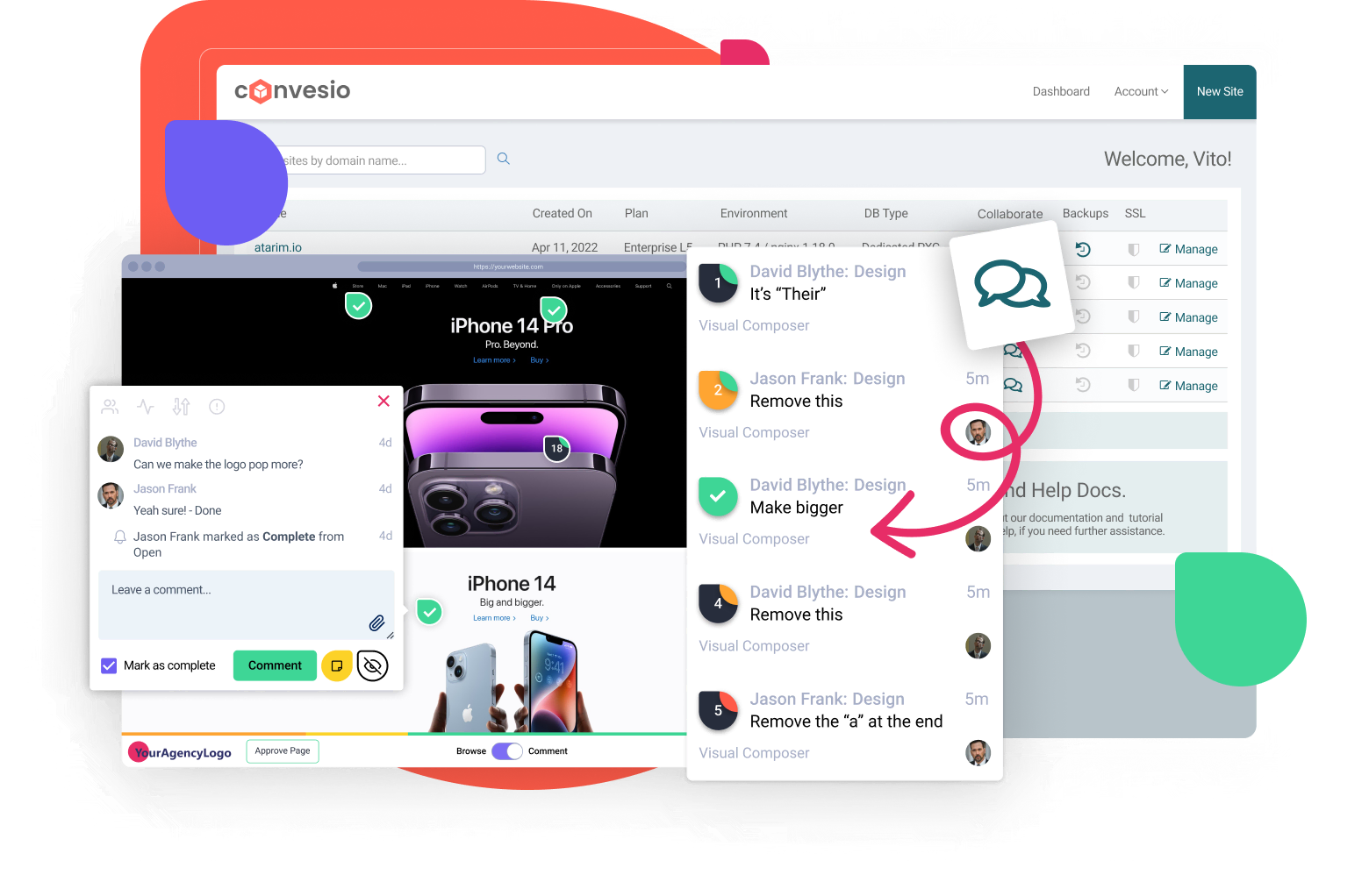 Imagine the legendary speed and stability of Convesio web hosting with the groundbreaking website design and management power of Atarim – the number one choice of design agencies around the world.