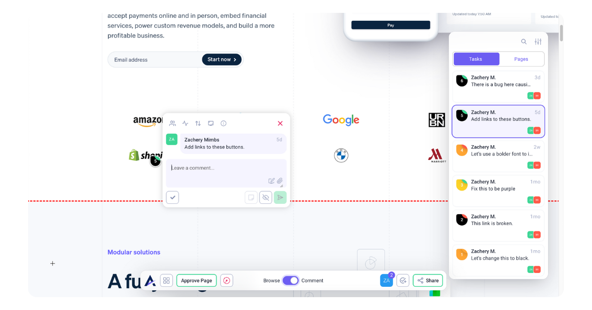 - Stakeholders can click directly on elements of a design or web page to leave comments. This pinpoint feedback helps designers understand exactly what needs to change, eliminating guesswork.