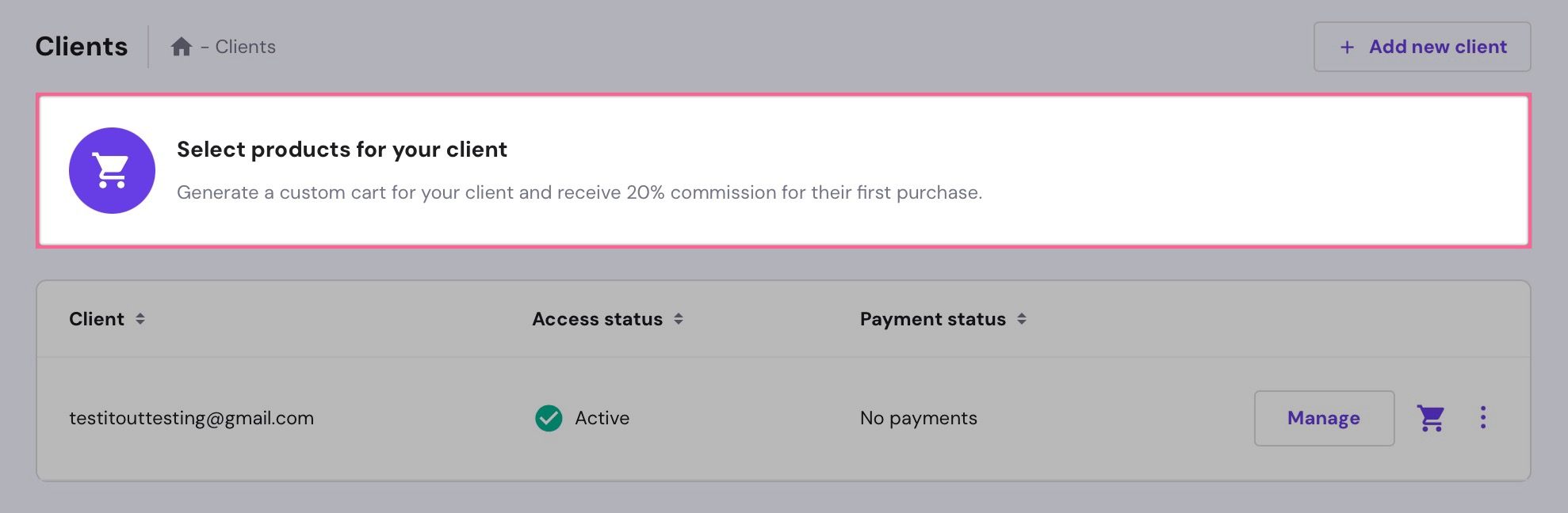 If your client isn’t a Hostinger user, or you want to buy another Hostinger plan for them, you can make the purchase correctly within the Pro Panel and earn commissions. 💰