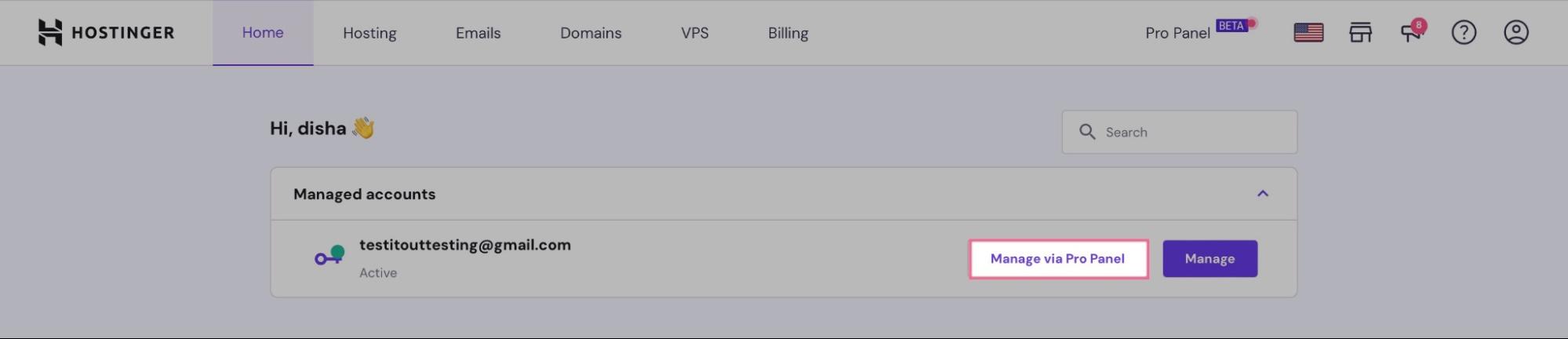 Here’s how managed accounts work in your Hostinger Pro Panel: