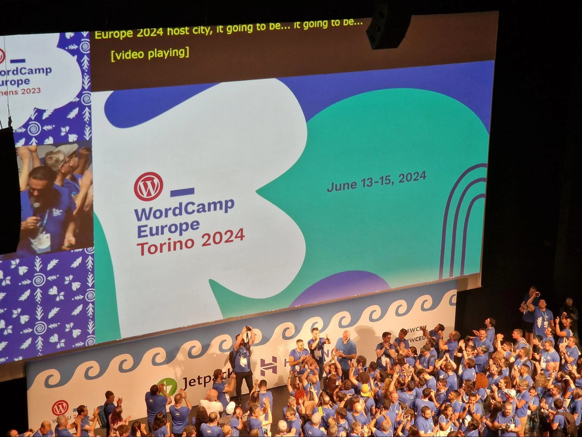 Well, of course, it’s WordCamp Europe 2024! Next year we’ll all be in Turin, Italy, and looking forward to meeting everyone again, discovering and learning about the exciting opportunities, innovations, ideas, and developments within the WordPress community as a result of the following twelve months.