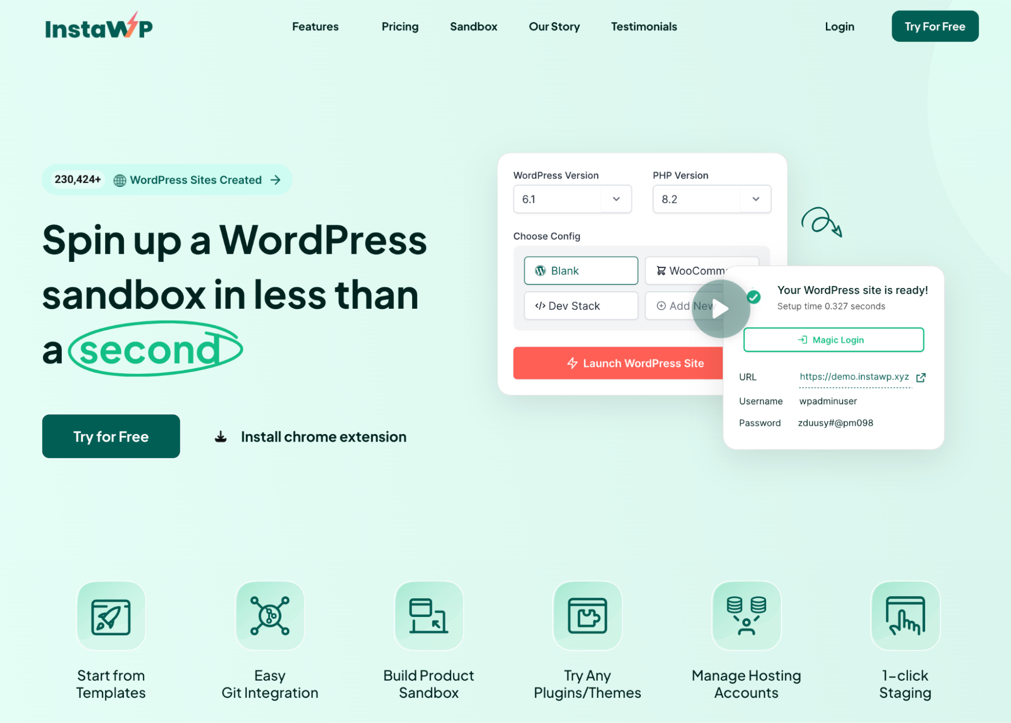 And, as you might’ve guessed from how we use it – InstaWP is a platform that makes it possible to spin up WordPress sandbox environments in less than a second.