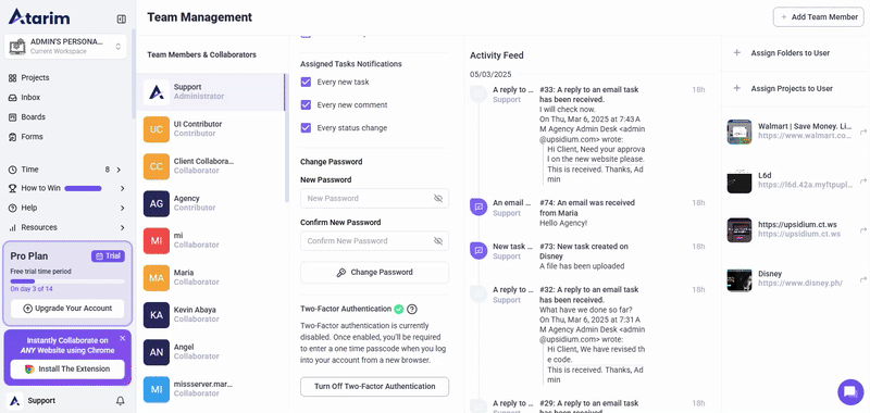 Secure your Atarim account with Two-Factor Authentication for enhanced protection.