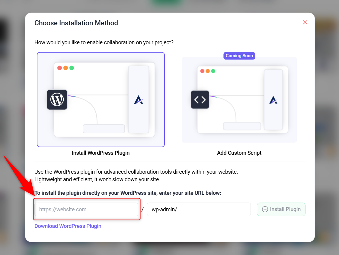 For websites or applications requiring deeper integration, install the Atarim script or WordPress plugin to gain more control over your projects.