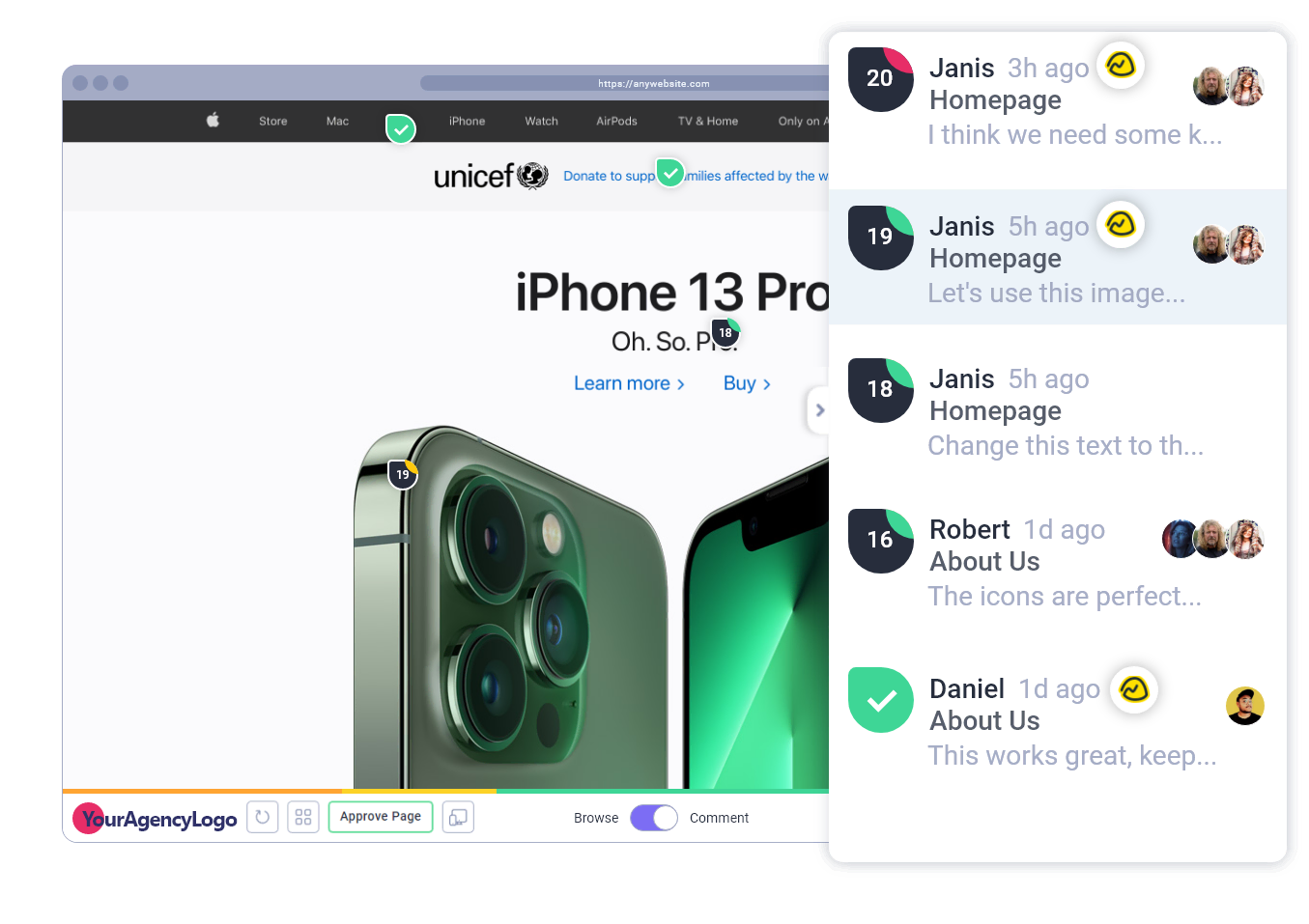 Any request that your clients make on their live website will be created inside your Basecamp project, with all the information you need to get the request done as soon as possible!