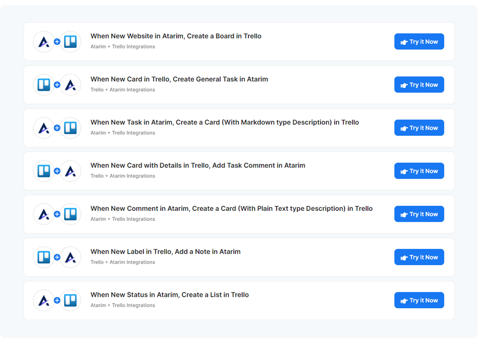 For example, for every new task created in Atarim, you can move all data across and create a new card in Trello. This ensures even if your clients are using a seperate platform, you are always keeping everything in sync, creating a workflow where nothing is ever missed!