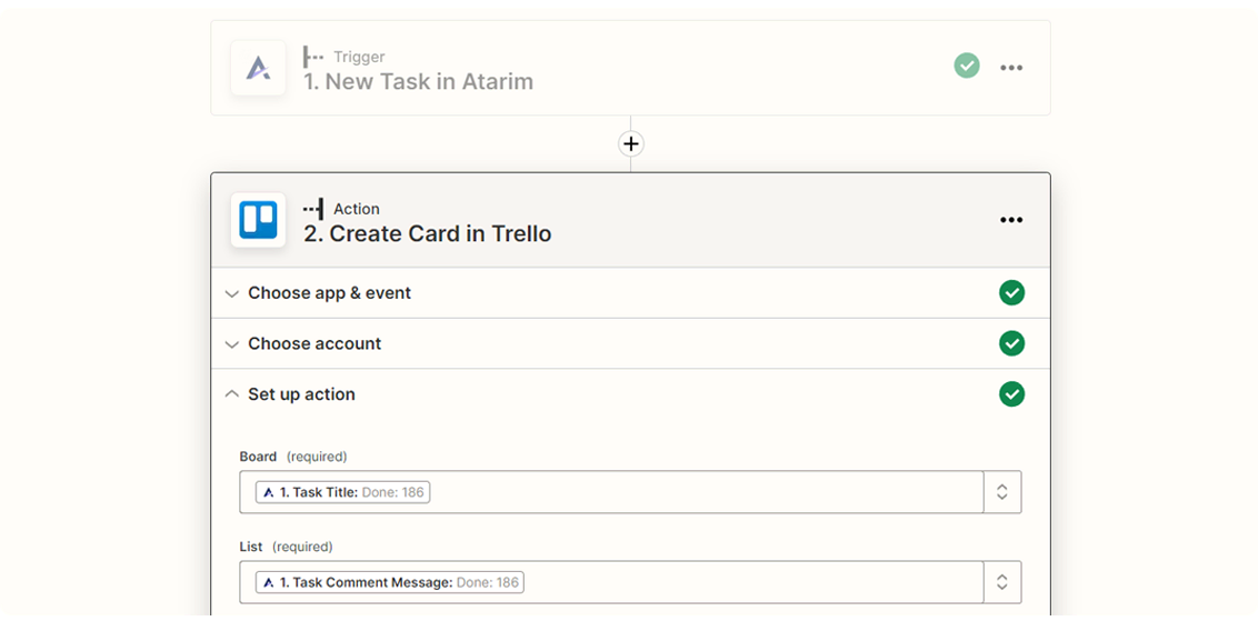 Zapier makes it possible for you to push data from other apps inside Atarim. For example, you can create tasks inside Atarim every time a card is created inside Trello.